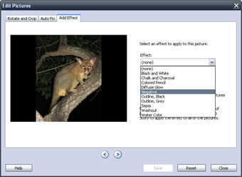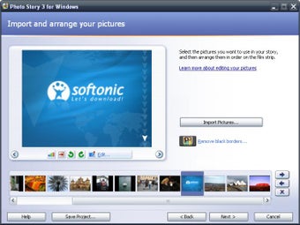Simple à manipuler, Microsoft Photo Story vous guide étape par étape dans la mise en valeur de vos images. Sélectionnez vos photos par lots et appliquez ensuite les retouches de votre choix.Vous pouvez corriger les yeux rouges, ajuster automatiquement les couleurs, remettre les clichés droit, rogner les bords ou appliquer l'un des 10 effets fournis (noir et blanc, sepia, négatif, etc.).